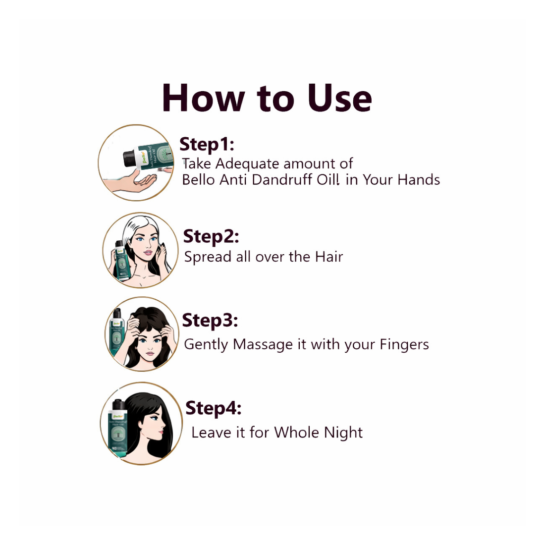 • Bello Anti Dandruff Hair oil is pure, mild and gentle to use.