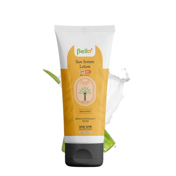 - Bello Sunscreen Lotion is designed for harsh summer sun rays. This lotion has SPF 50+ with UVA/UVB protection and PA++++ rating.